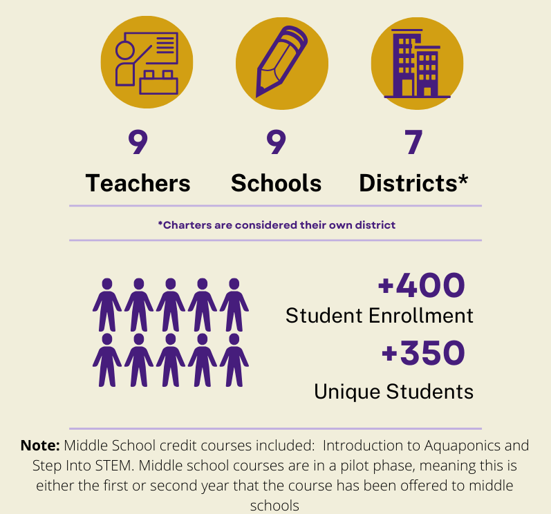 The Middle School STEM Pathways Program is pleased to announce that we now offer three middle school electives to serve as a pipeline to prepare students for the High School STEM Pathways– Aquaponics, Step into STEM, and Intro to Computing. These courses provide middle school students with the opportunity to access quality STEM courses through project-based learning experiences without the pressure of high school credit.